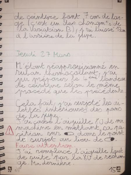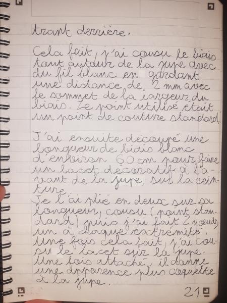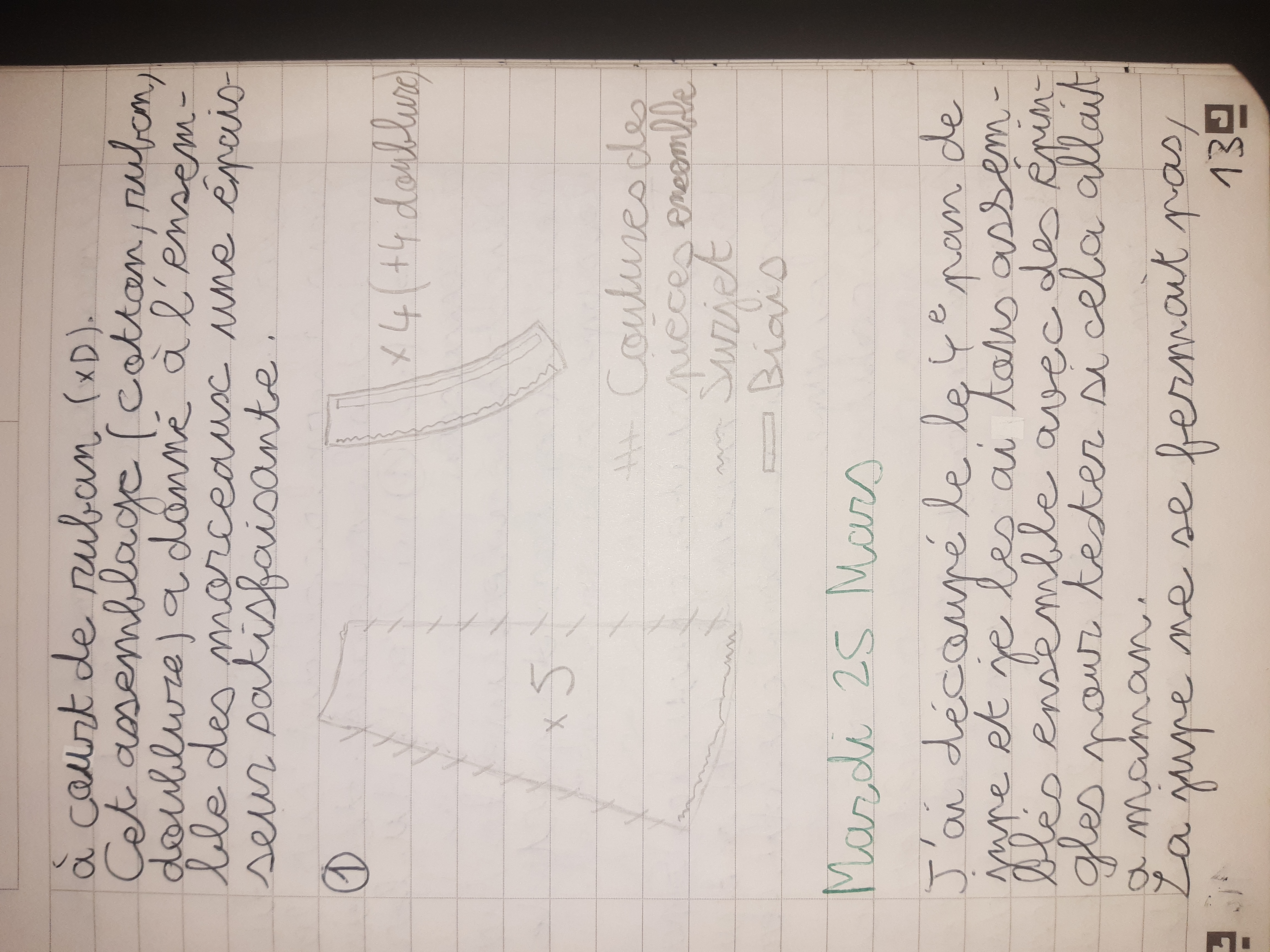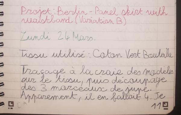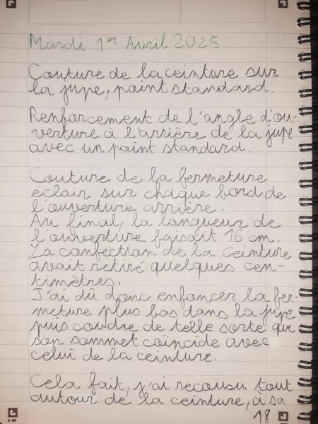 Du 24 Mars 2025 au 3 Avril 2025 (11 jours). Mon deuxième ouvrage, une jupe en cotton. Le tissu était beaucoup plus facile à traiter que le premier. Je n’ai pas vraiment eu de tracas avec ce projet.