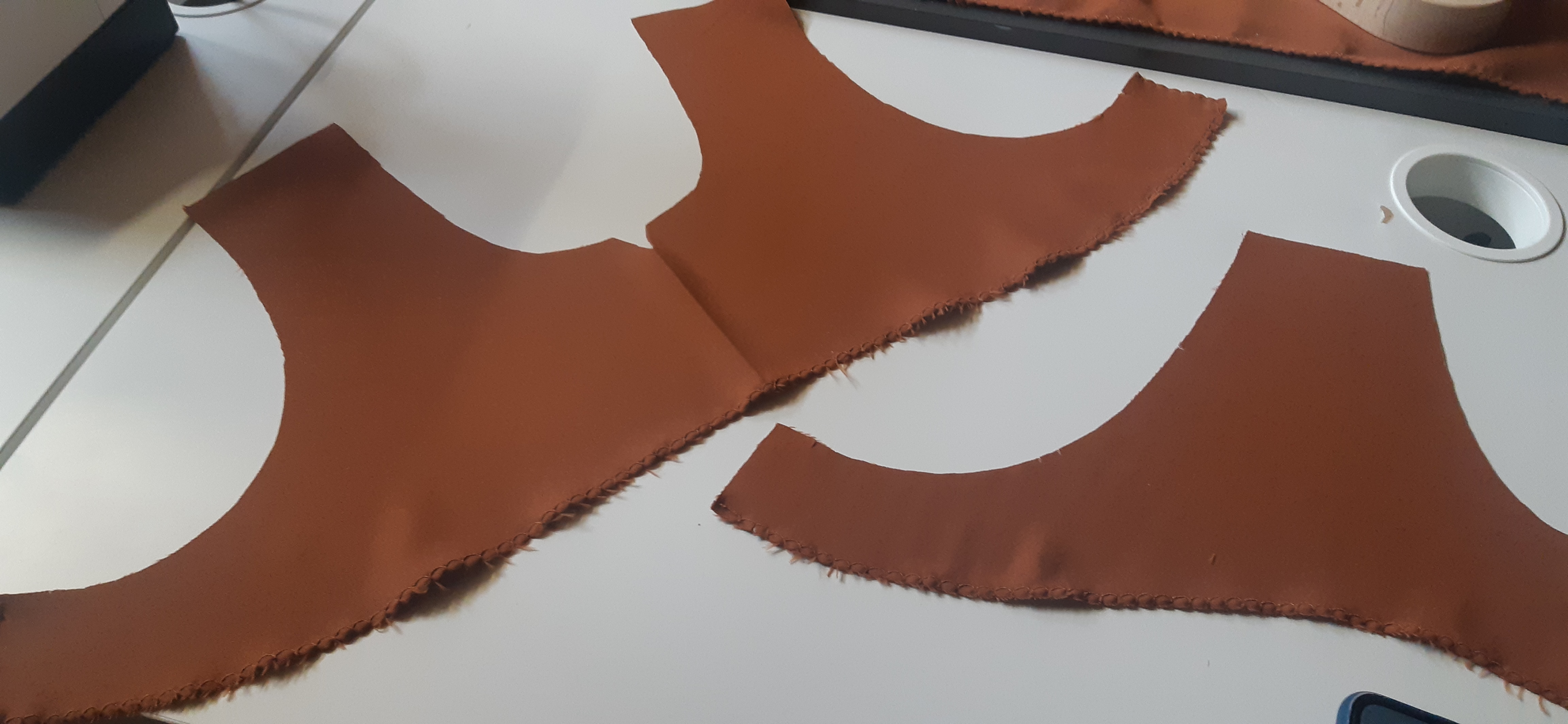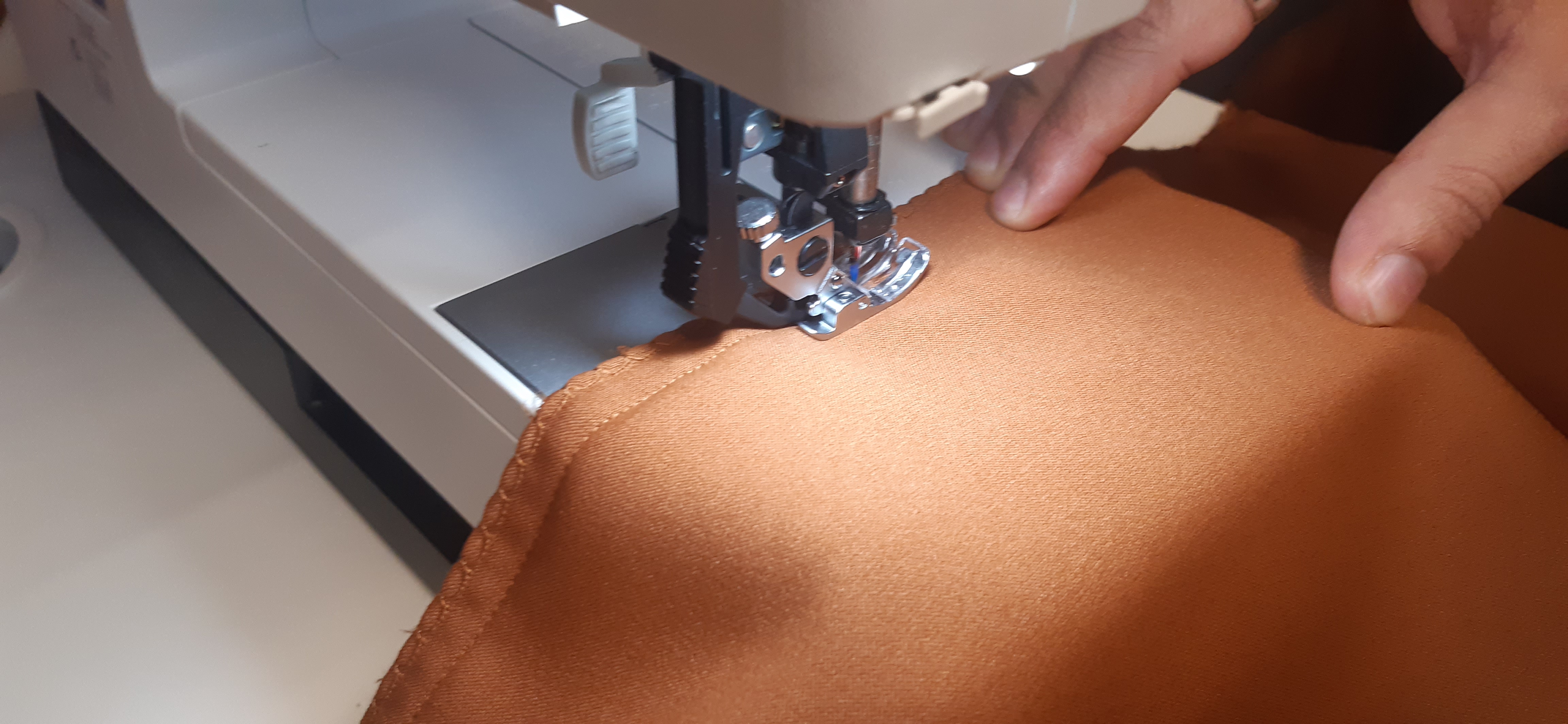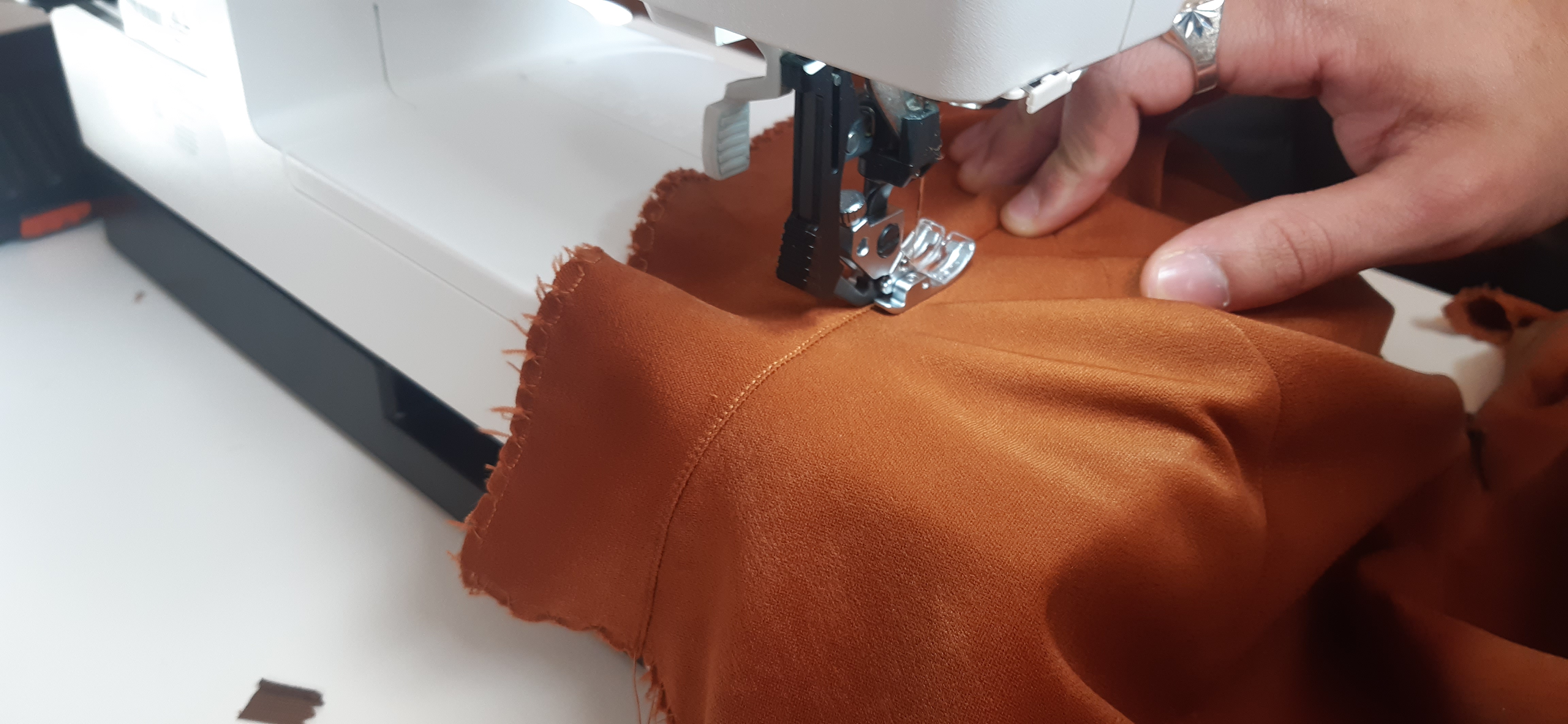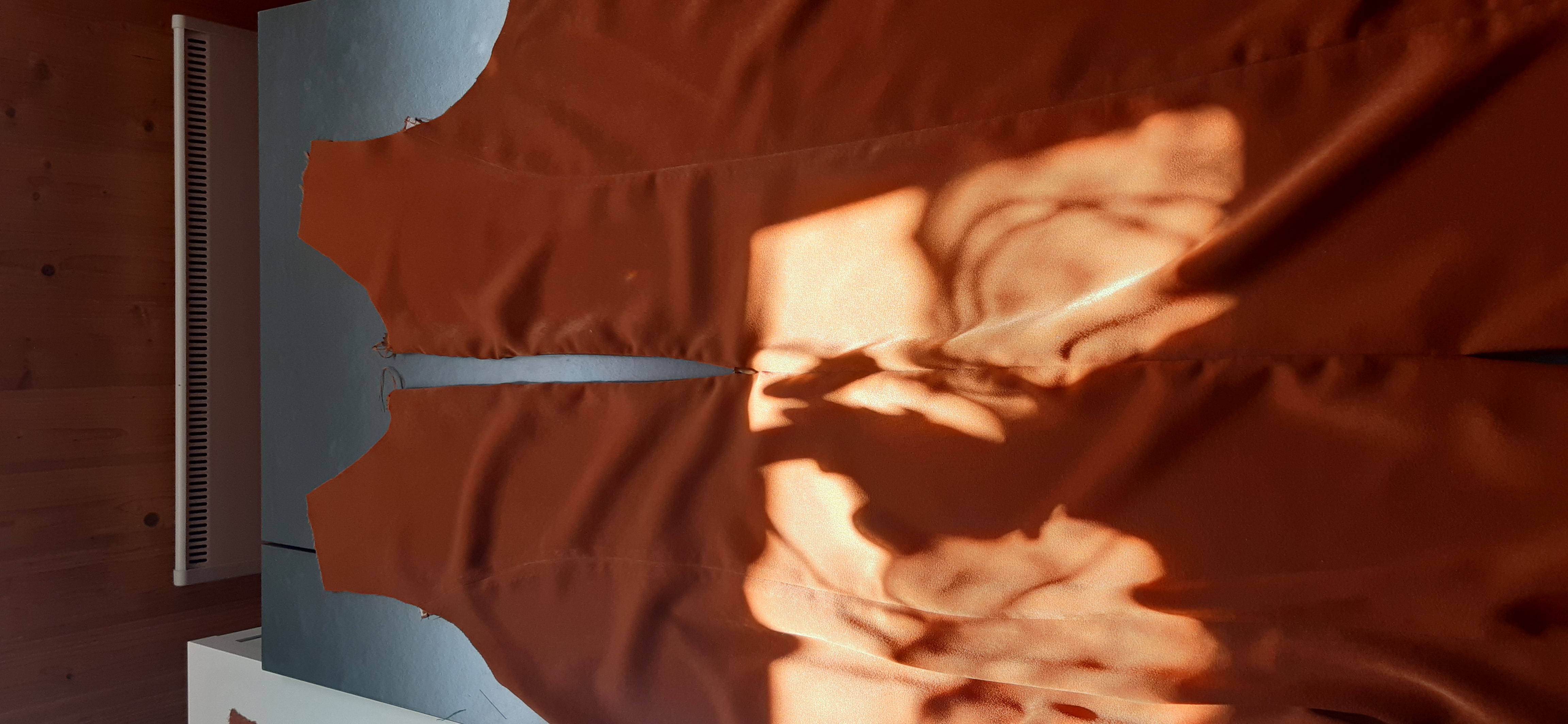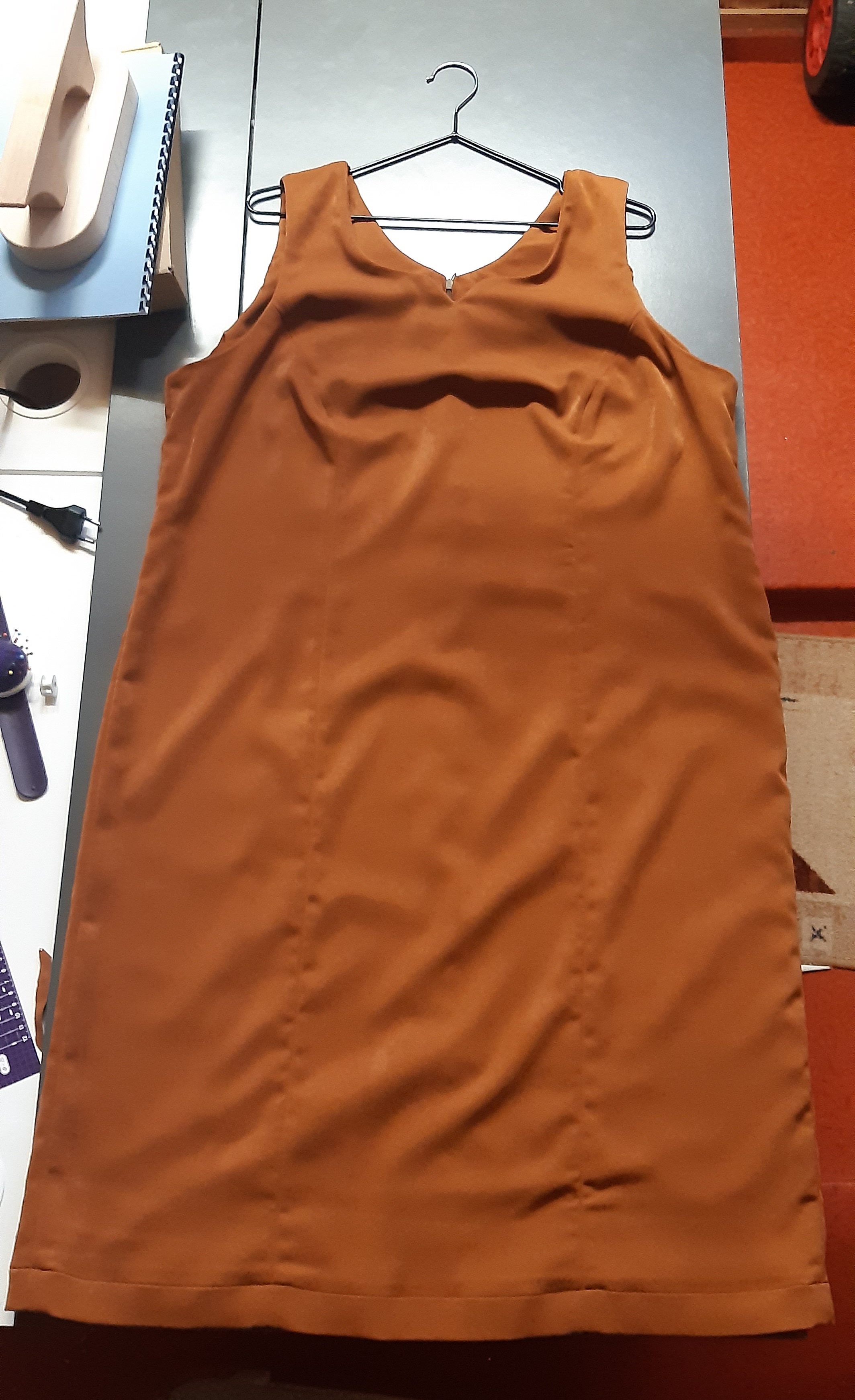 Du 7 Avril au 23 Avril (16 jours). Mon troisième ouvrage, une robe en tissu stretch velouté avec une fermeture éclair invisible. Le tracé a été quelque peu fastidieux, car le tissu s’étirait si trop de pression était effectuée. Je n’ai pas eu de souci particulier au niveau de la couture.