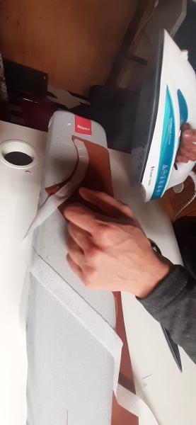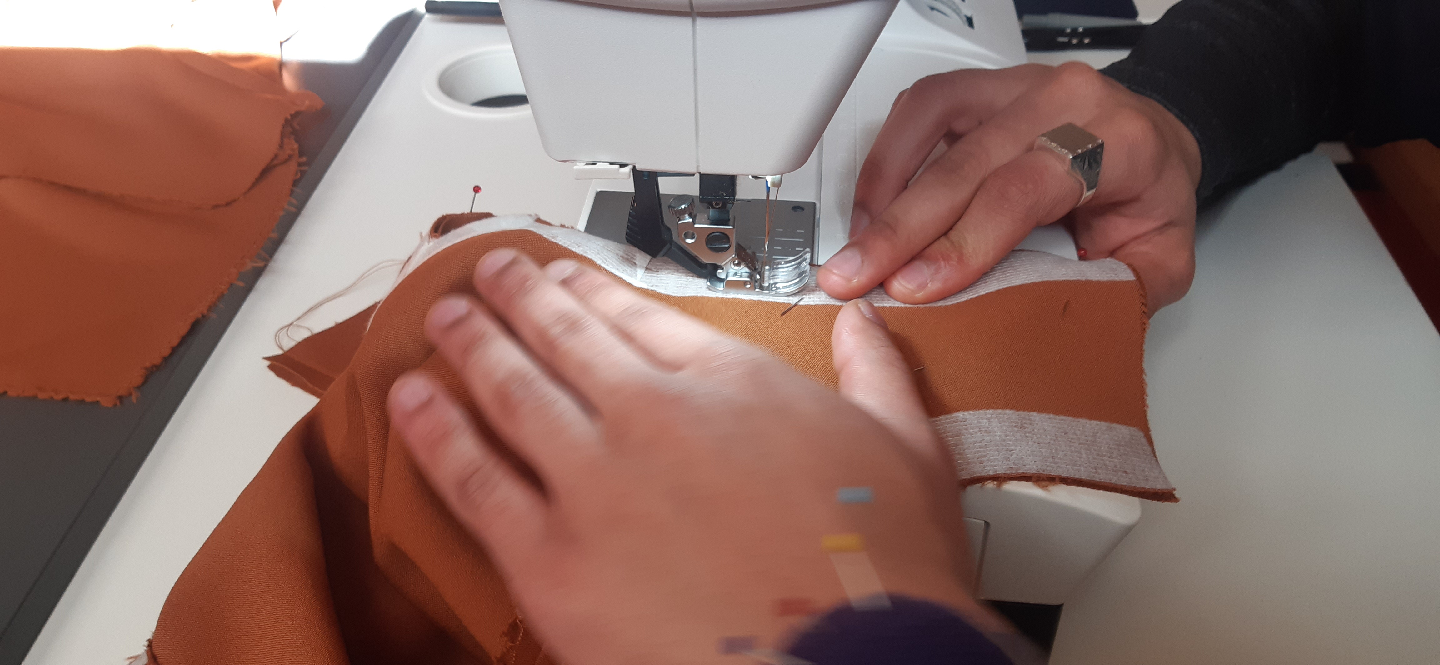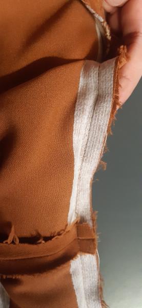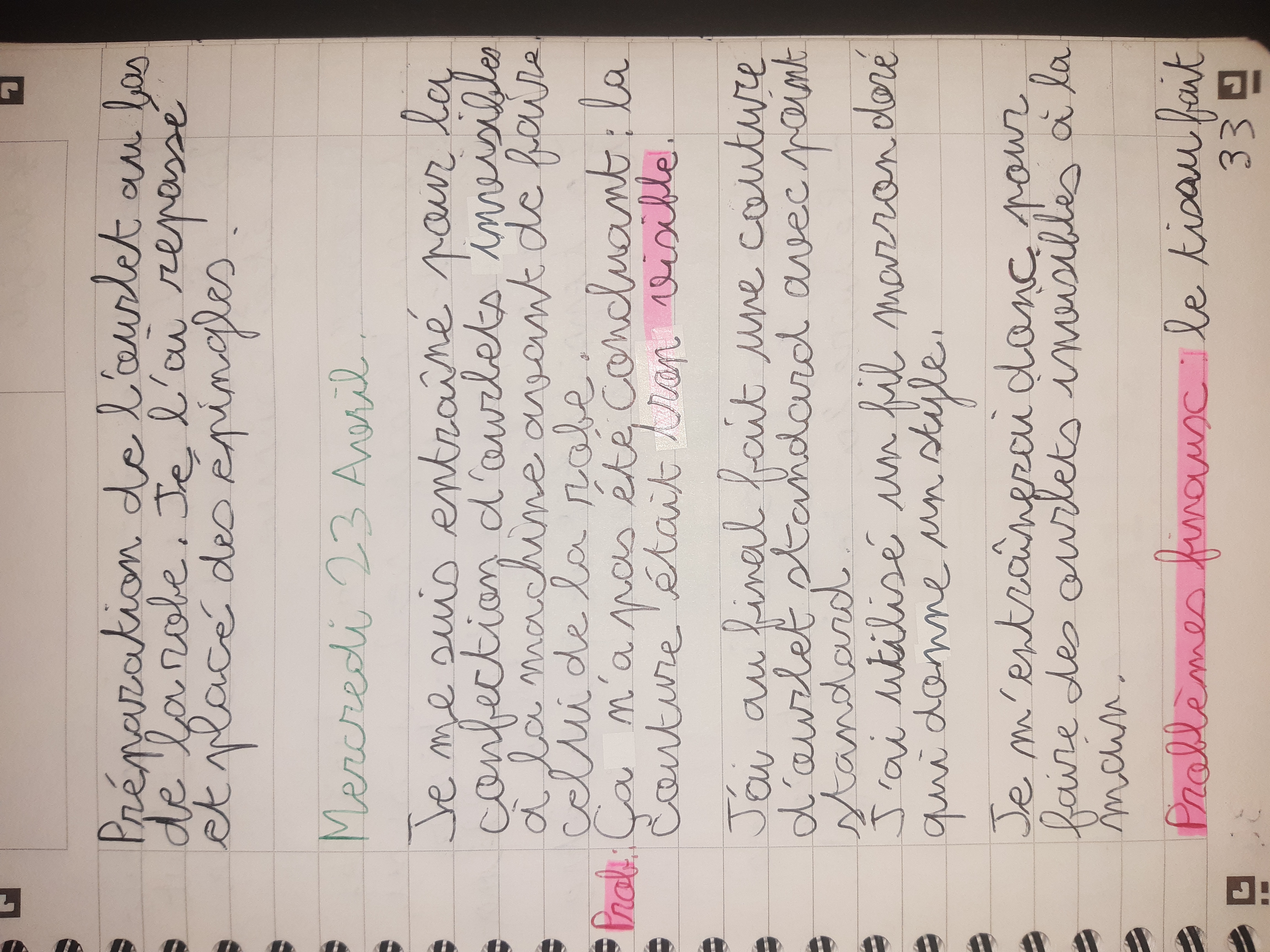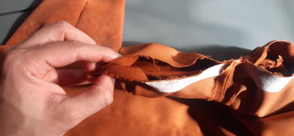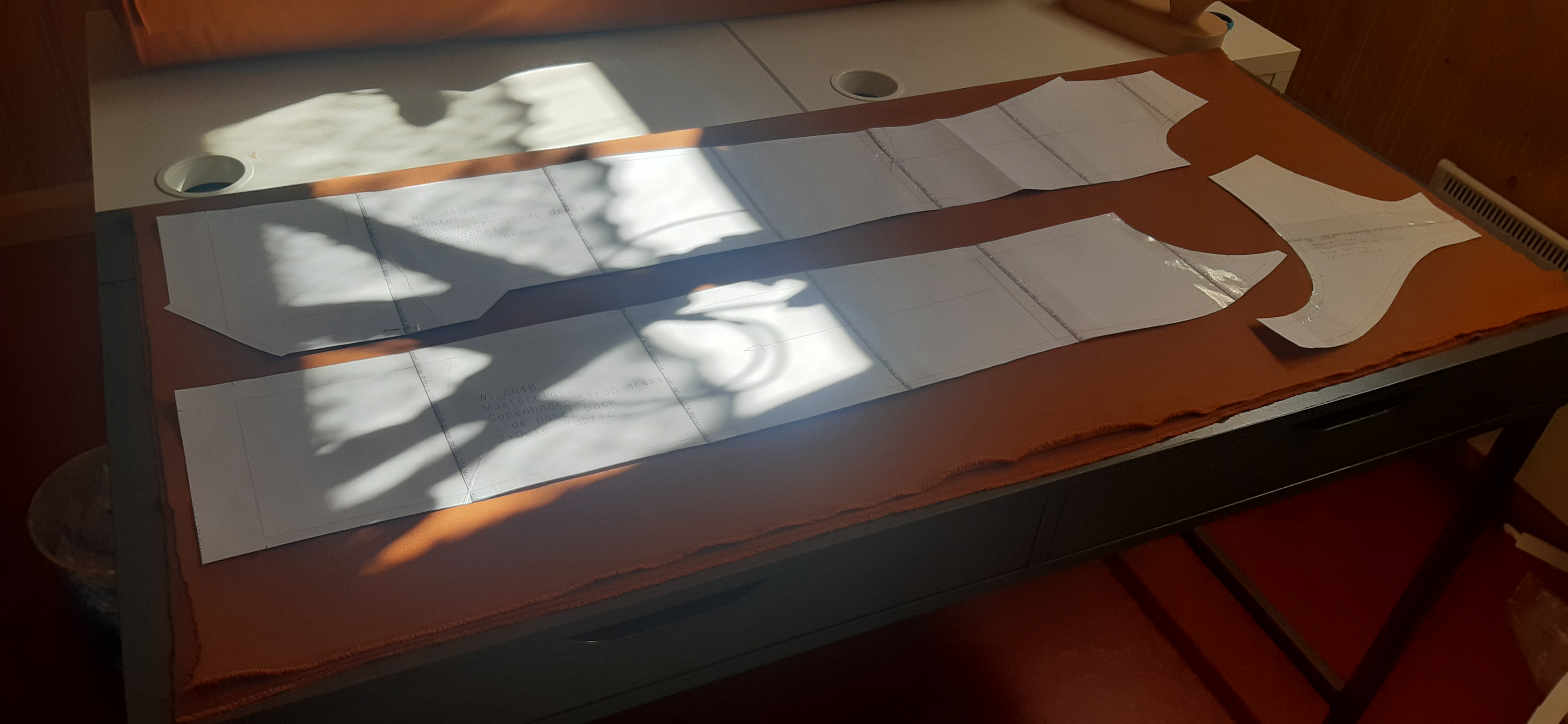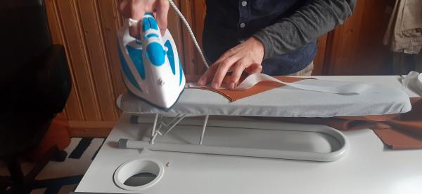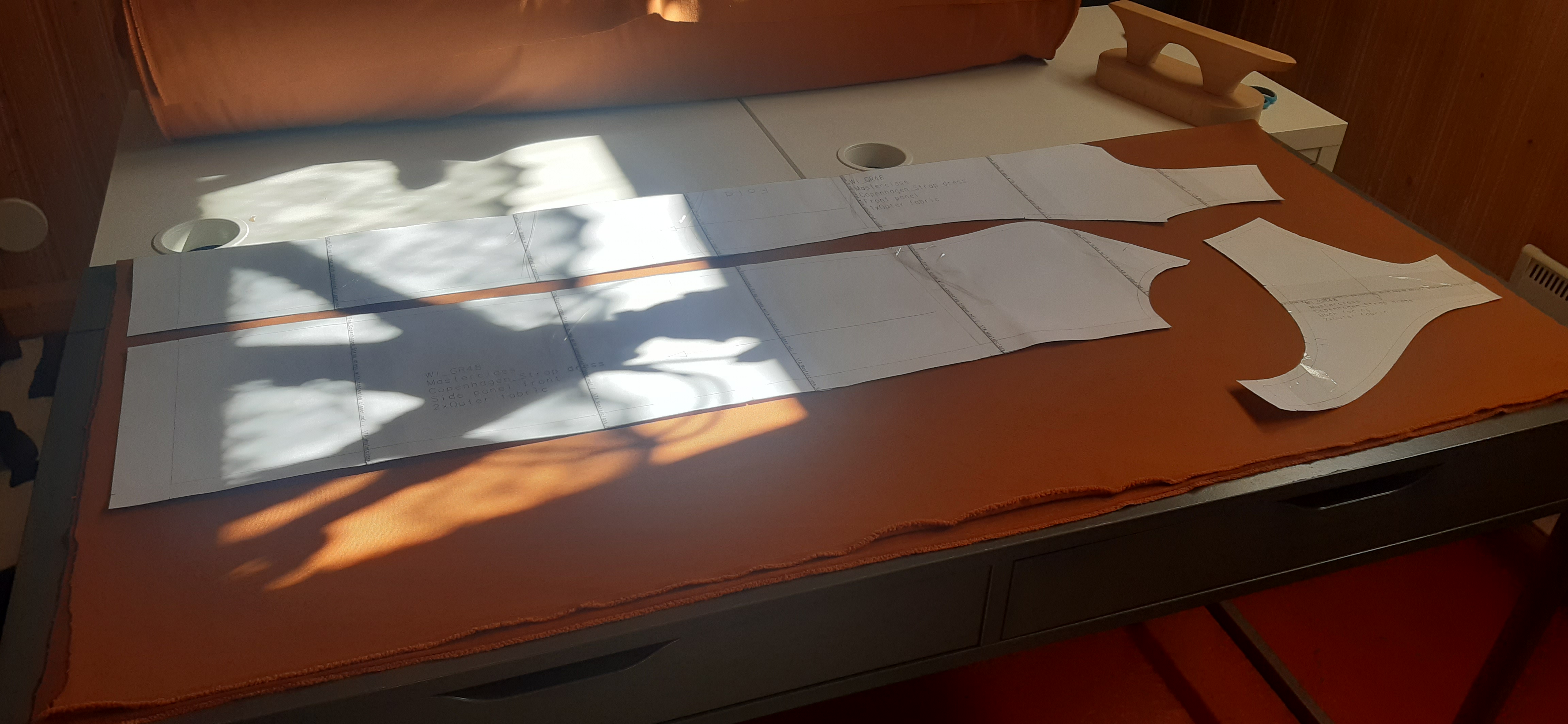 Du 7 Avril au 23 Avril (16 jours). Mon troisième ouvrage, une robe en tissu stretch velouté avec une fermeture éclair invisible. Le tracé a été quelque peu fastidieux, car le tissu s’étirait si trop de pression était effectuée. Je n’ai pas eu de souci particulier au niveau de la couture.