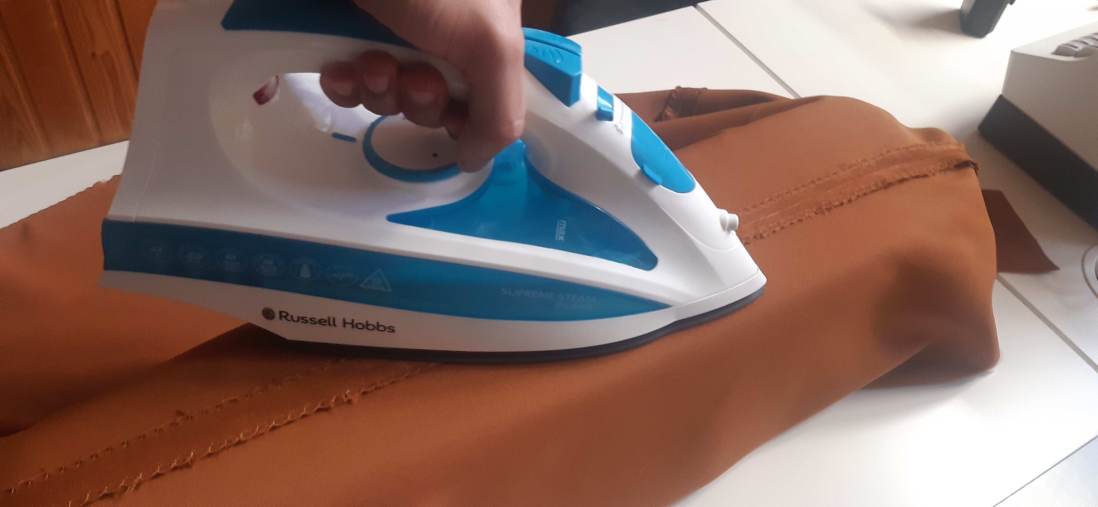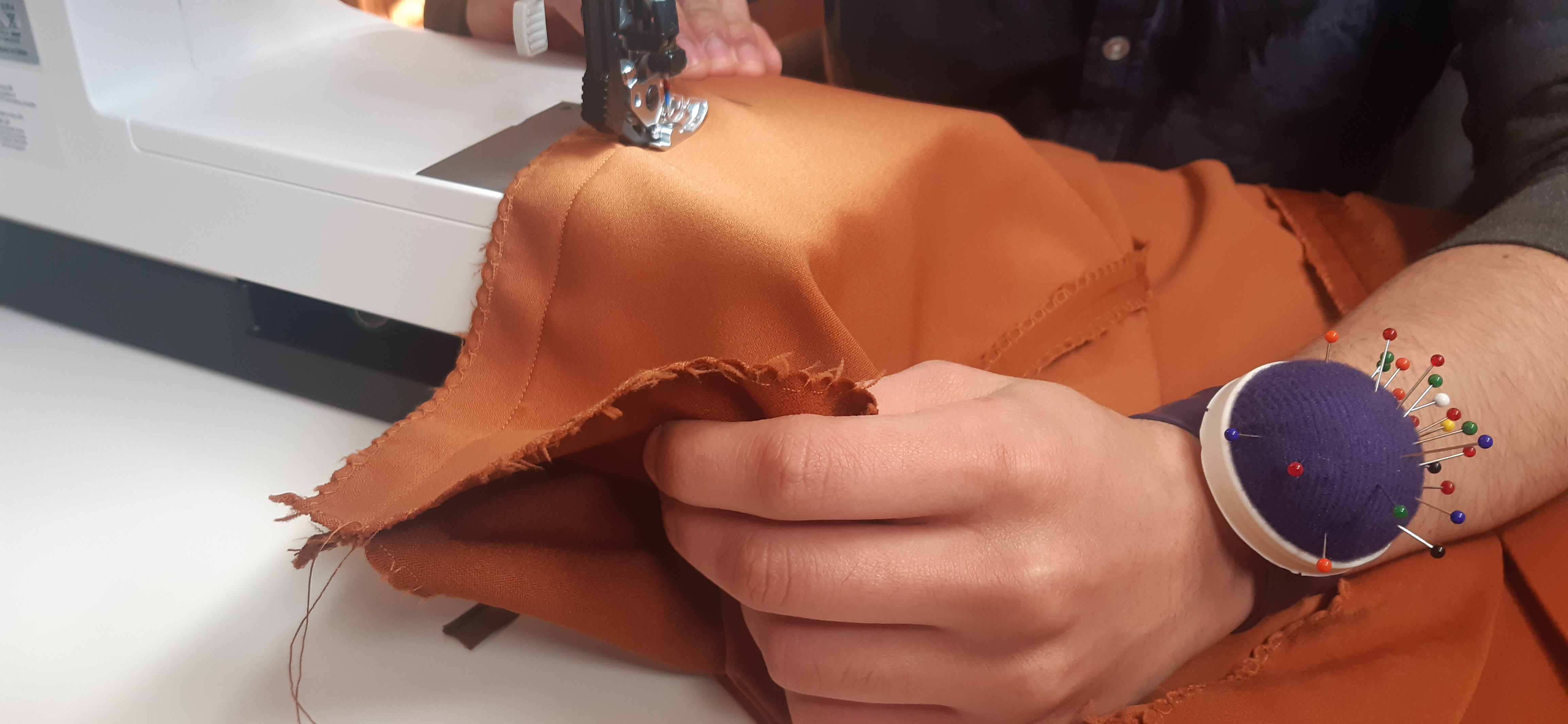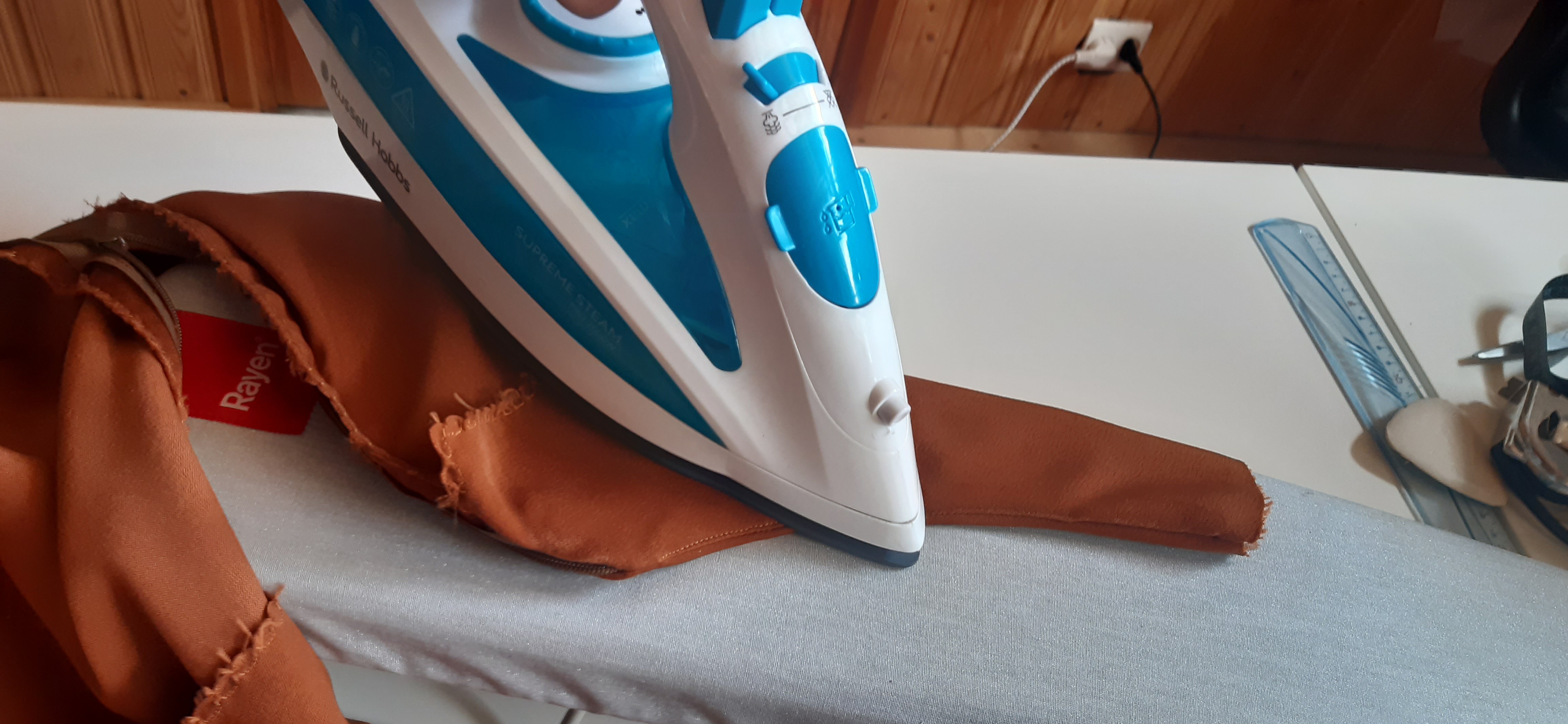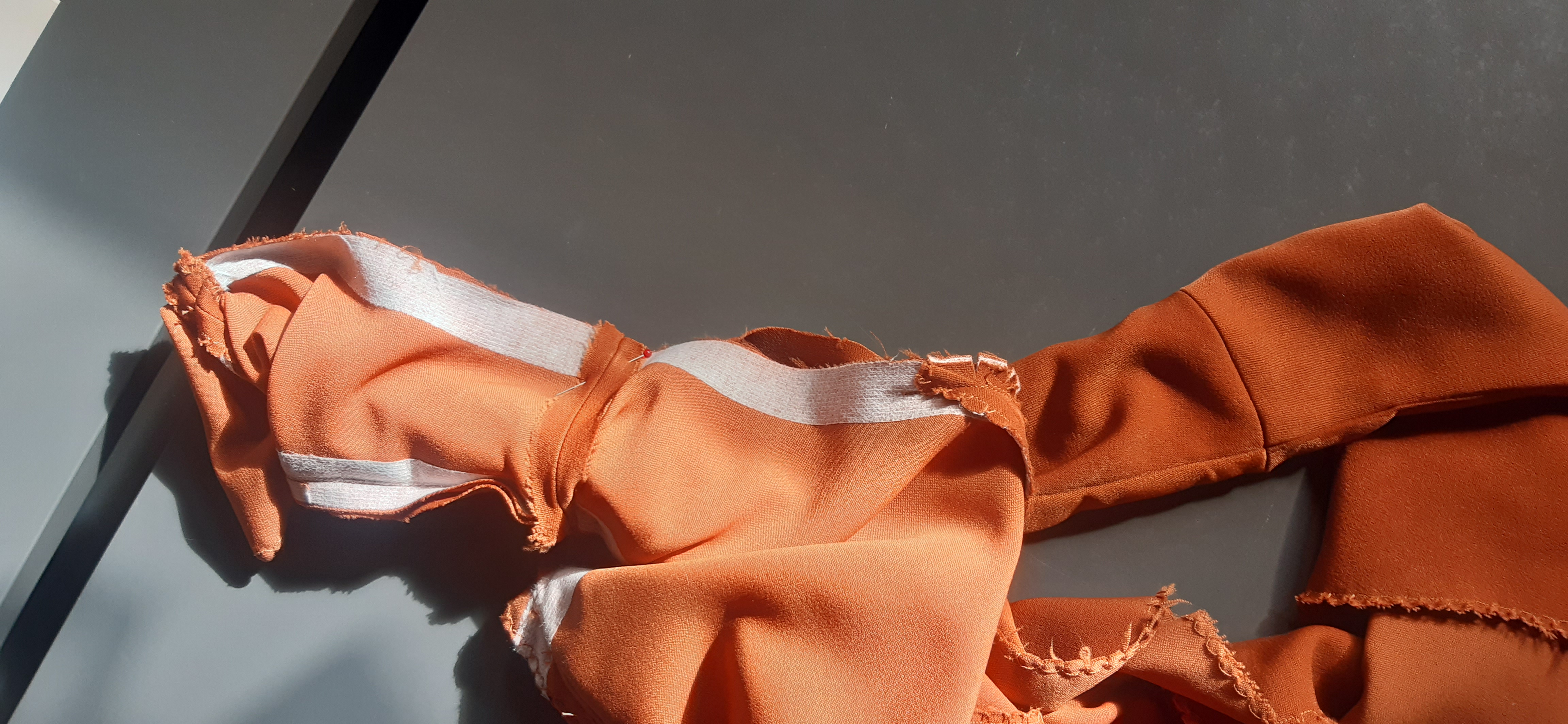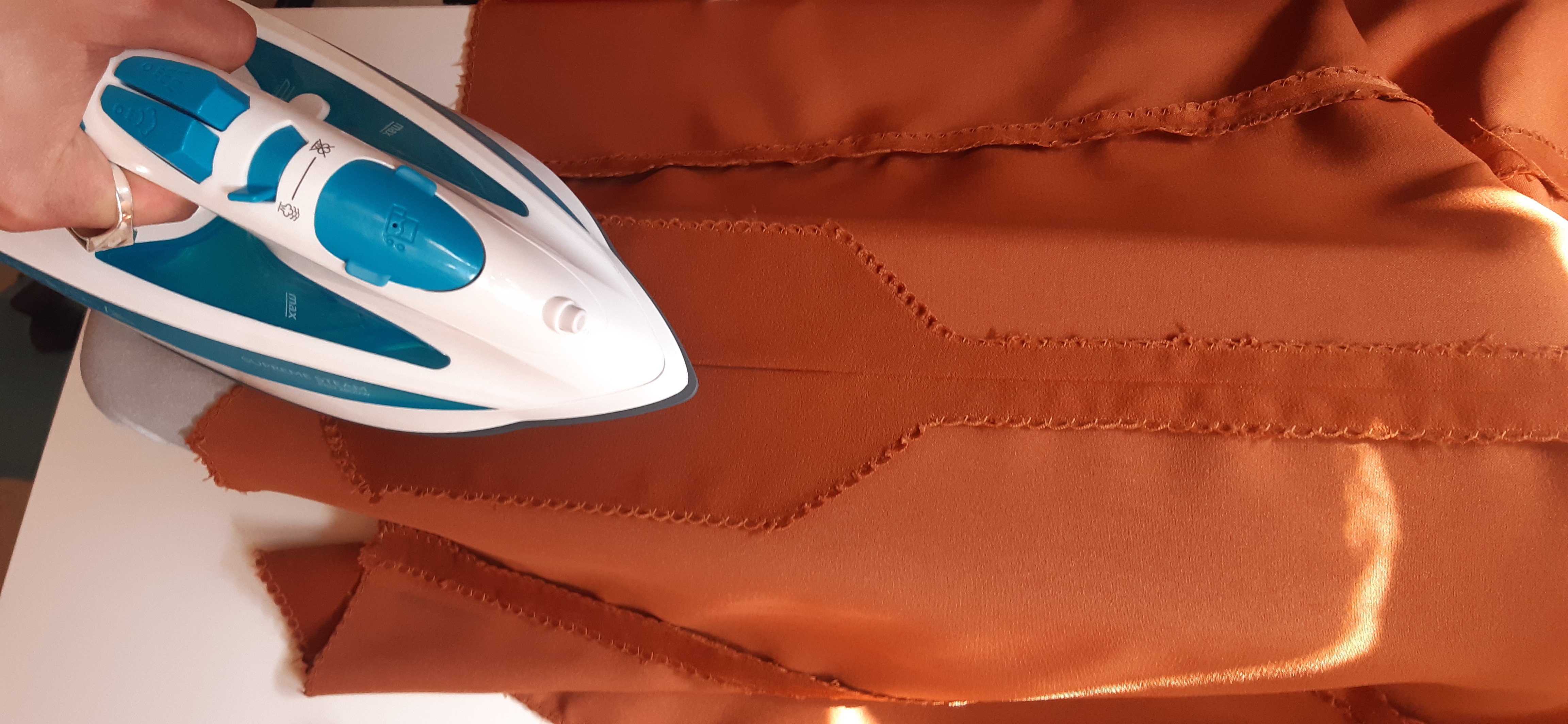 Du 7 Avril au 23 Avril (16 jours). Mon troisième ouvrage, une robe en tissu stretch velouté avec une fermeture éclair invisible. Le tracé a été quelque peu fastidieux, car le tissu s’étirait si trop de pression était effectuée. Je n’ai pas eu de souci particulier au niveau de la couture.