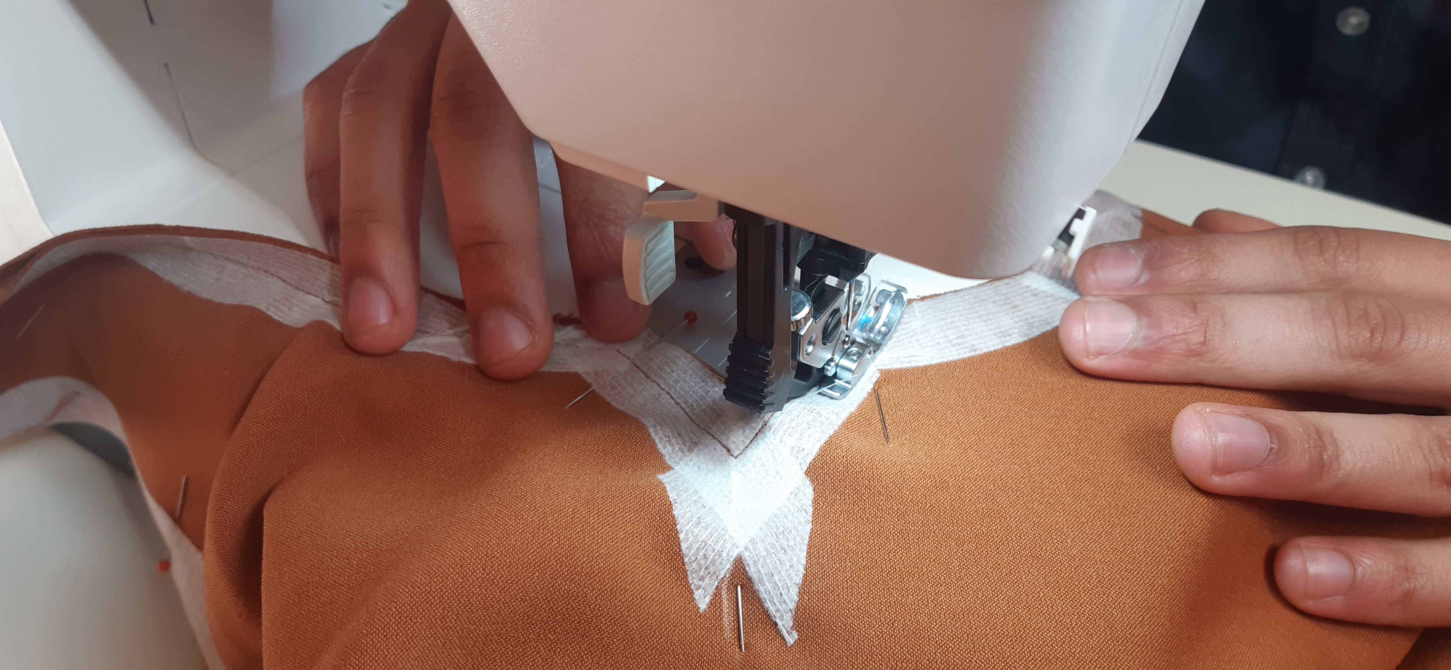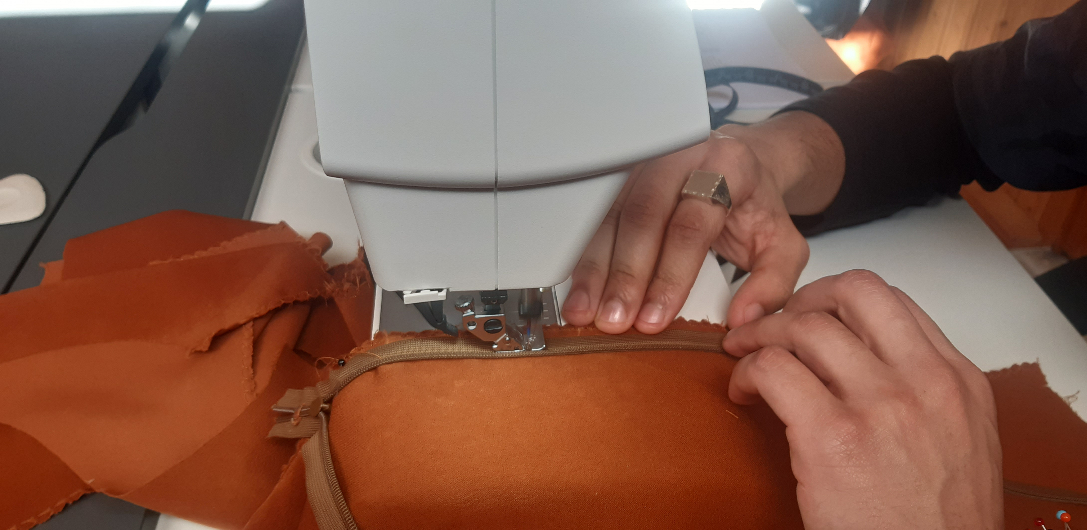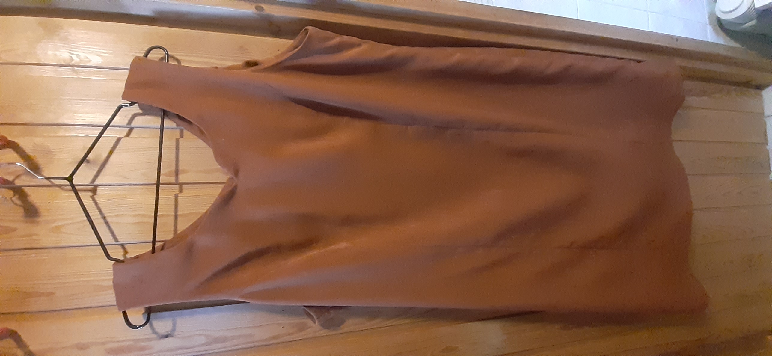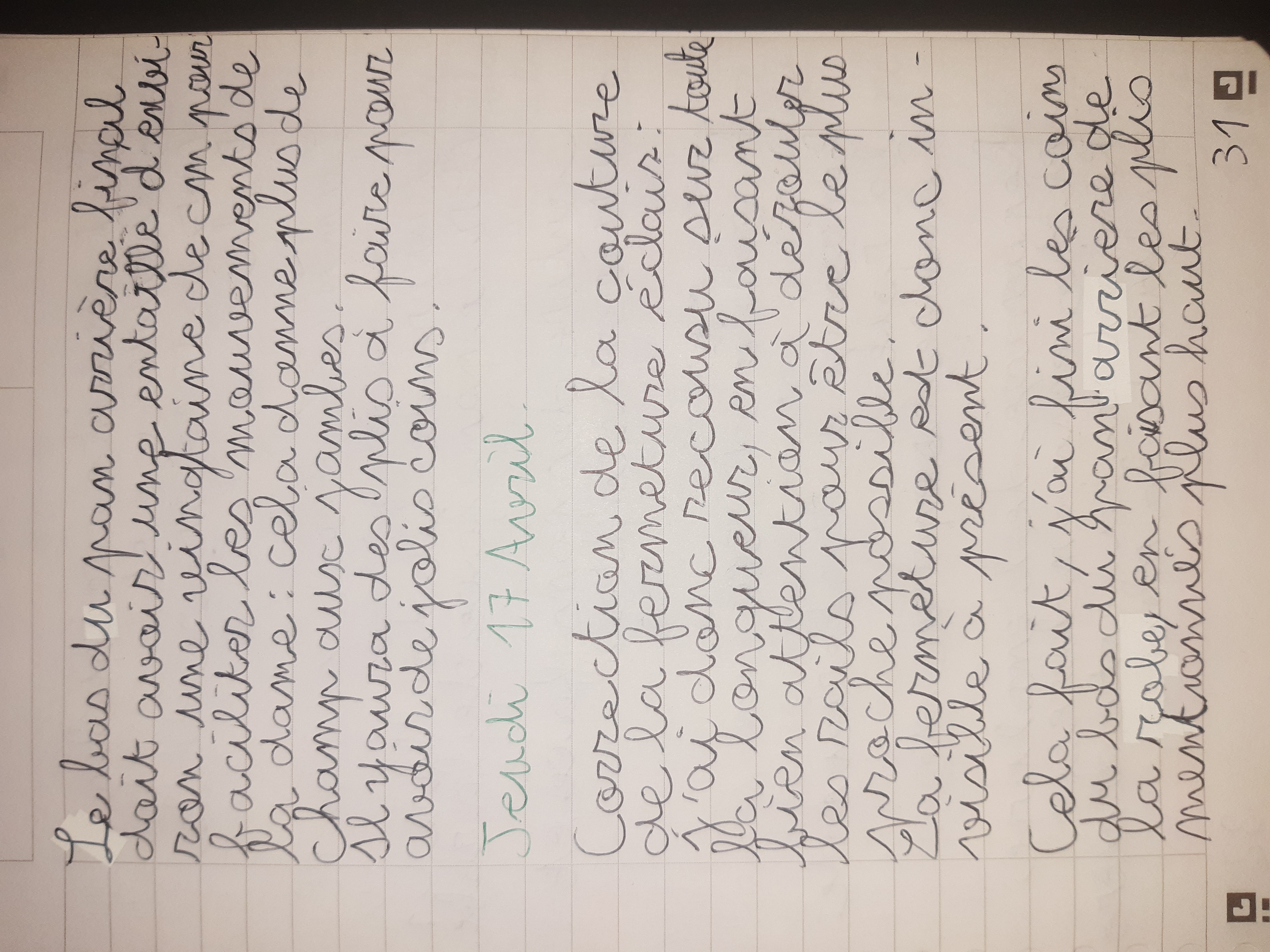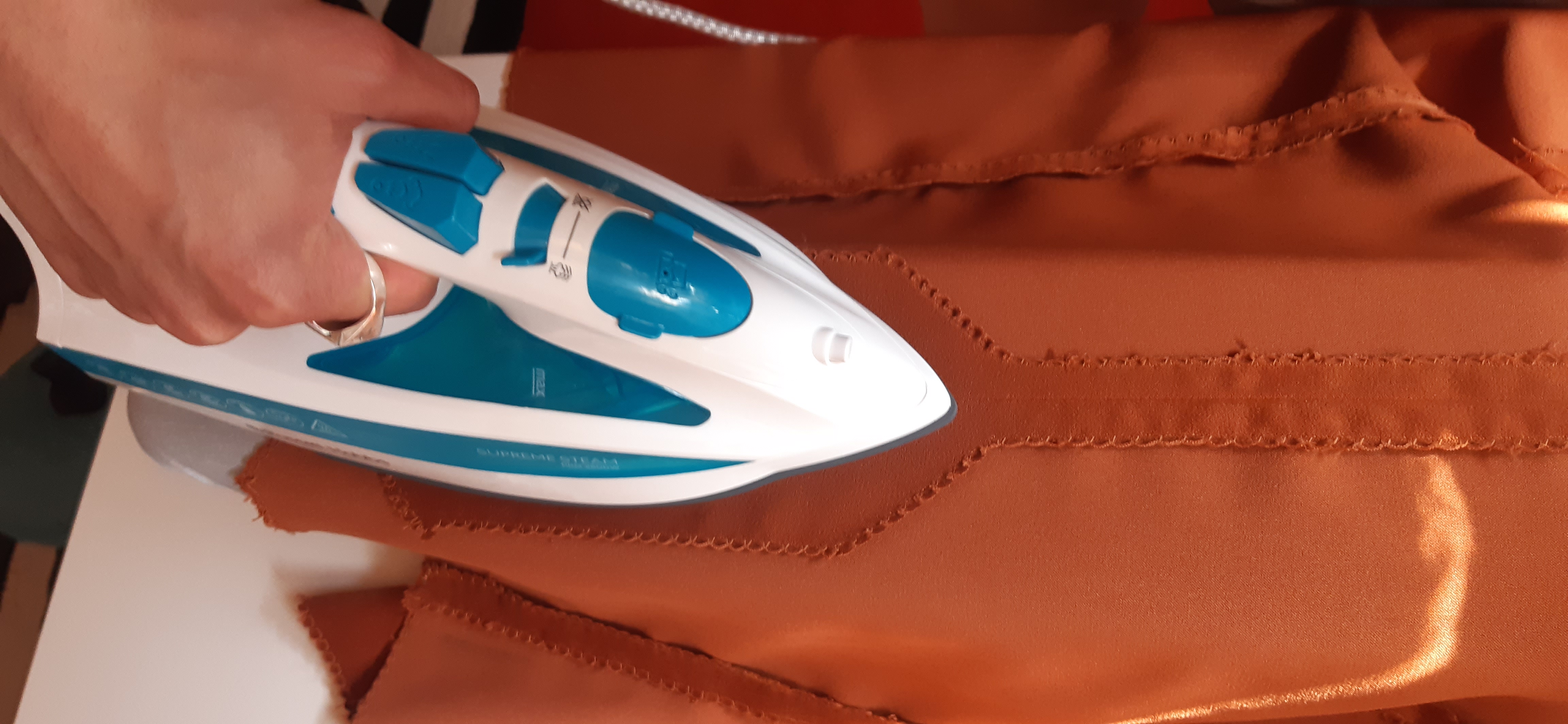 Du 7 Avril au 23 Avril (16 jours). Mon troisième ouvrage, une robe en tissu stretch velouté avec une fermeture éclair invisible. Le tracé a été quelque peu fastidieux, car le tissu s’étirait si trop de pression était effectuée. Je n’ai pas eu de souci particulier au niveau de la couture.