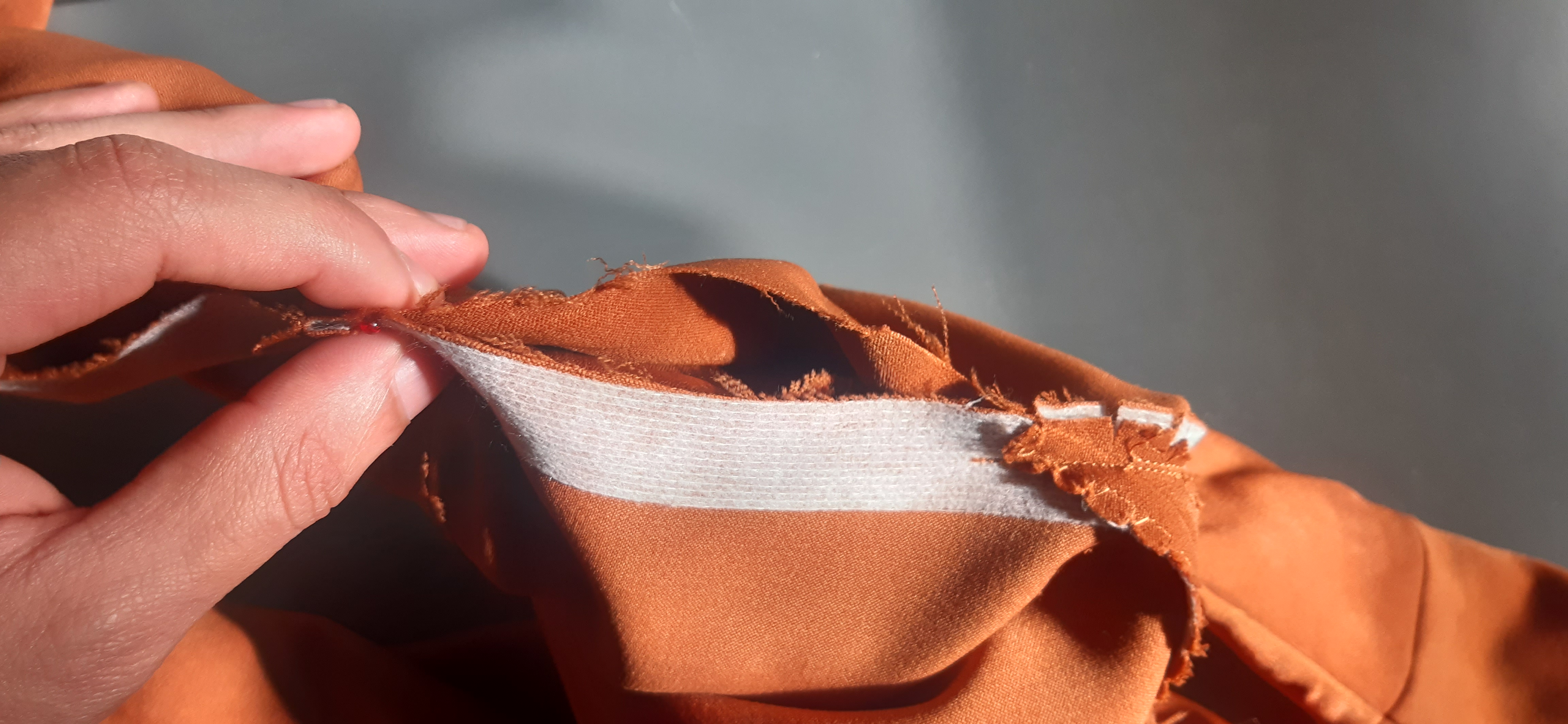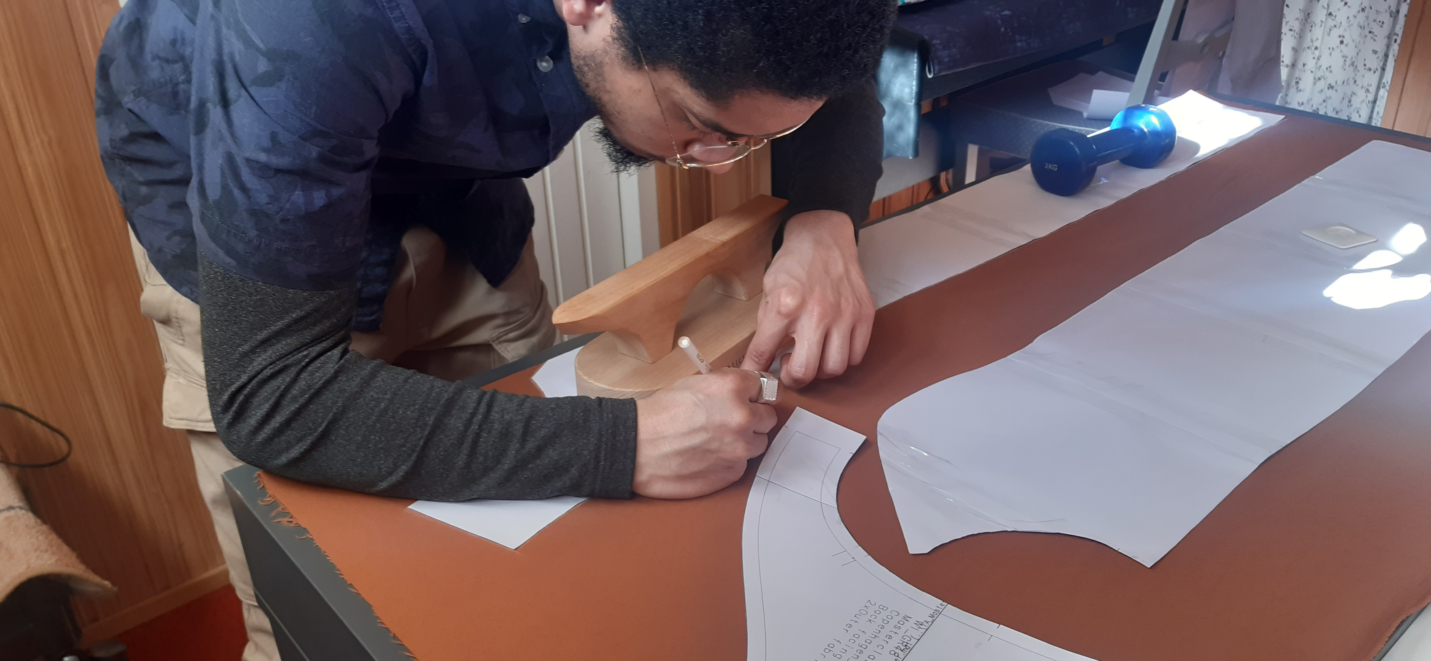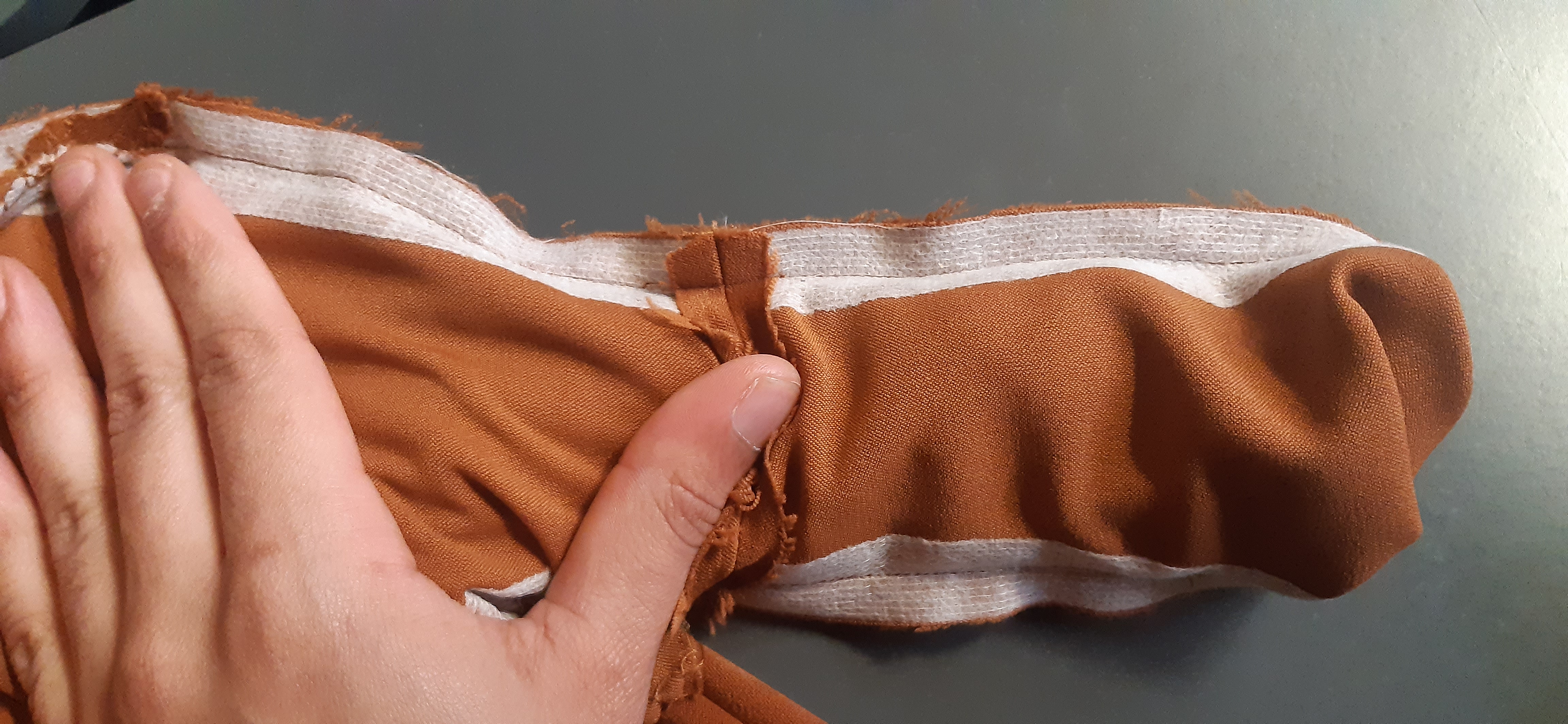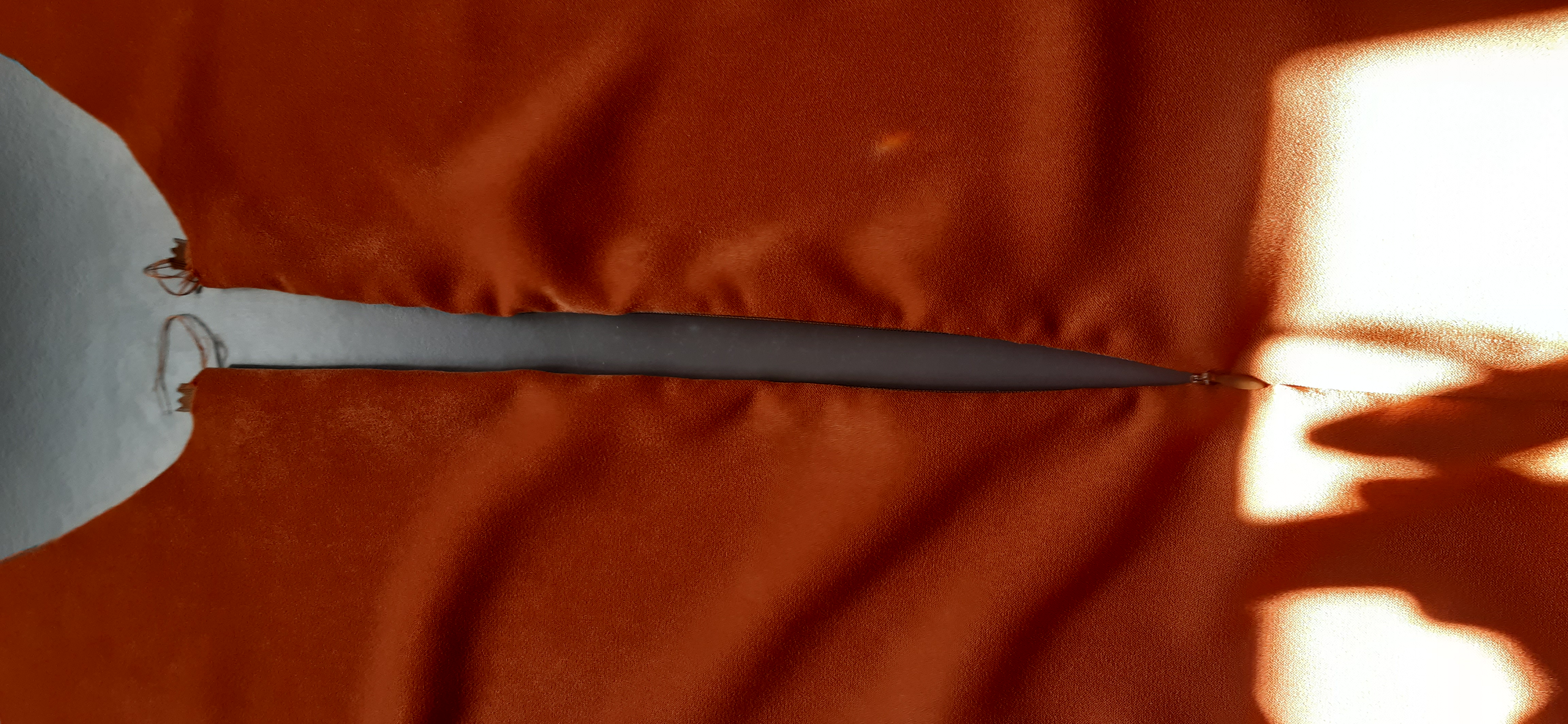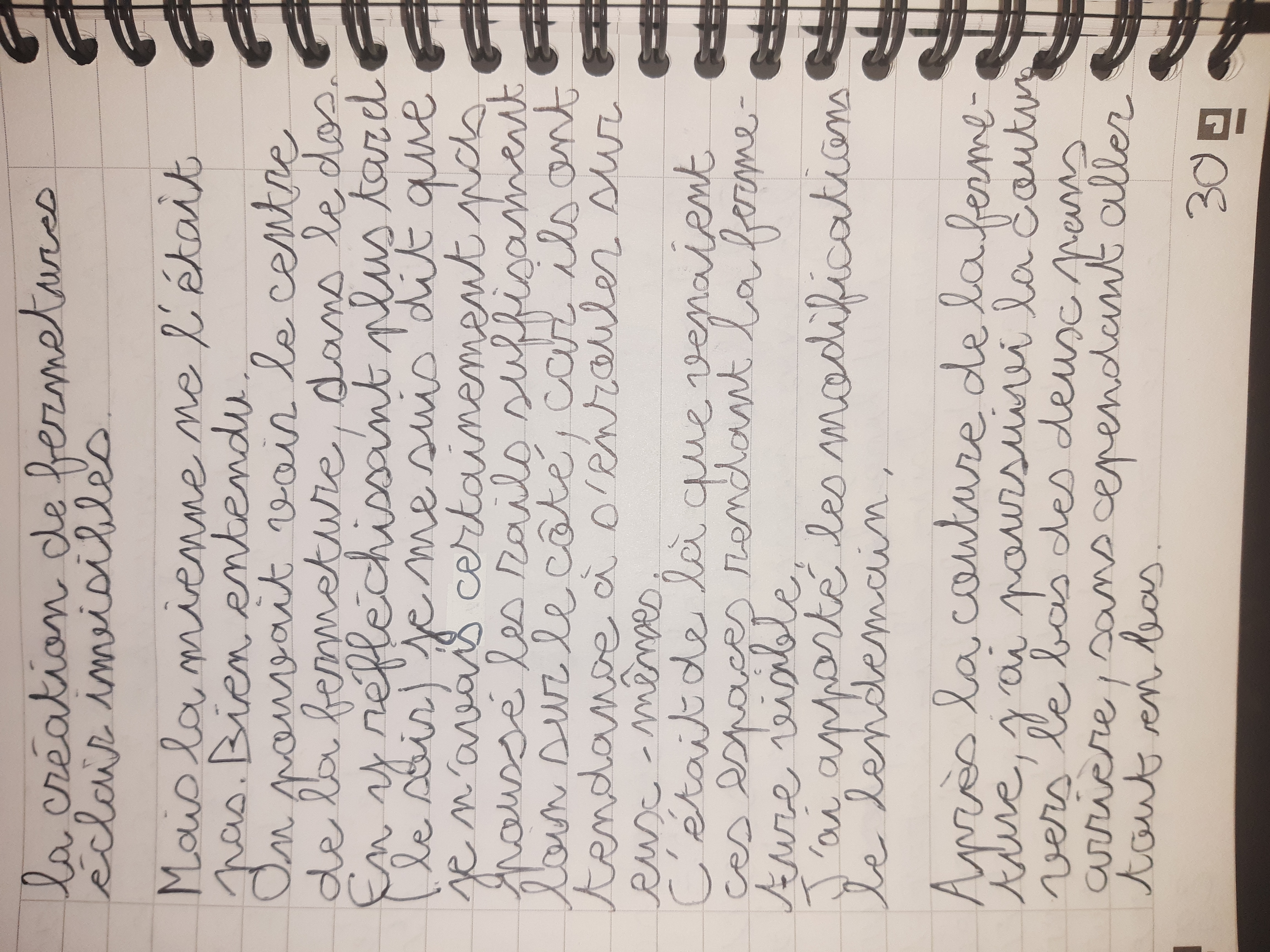 Du 7 Avril au 23 Avril (16 jours). Mon troisième ouvrage, une robe en tissu stretch velouté avec une fermeture éclair invisible. Le tracé a été quelque peu fastidieux, car le tissu s’étirait si trop de pression était effectuée. Je n’ai pas eu de souci particulier au niveau de la couture.
